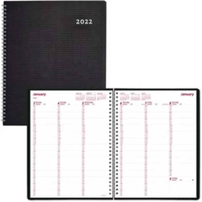 Brownline DuraFlex Weekly Planner - Julian Dates - Weekly - 1 Year - January 2022 till December 2022 - 7:00 AM to 8:45 PM - Quarter-hourly, 7:00 AM to 5:45 PM - Quarter-hourly - 1 Week Single Page Layout - 11 x 8 1/2 Sheet Size - Twin Wire - Black - Poly - Heavy Duty, Textured Cover, Appointment Schedule, Address Directory, Phone Directory, Reference Calendar, Non-refillable, Flexible Cover - 1 Each