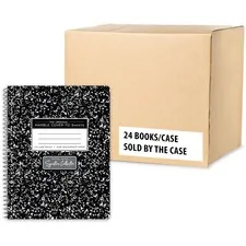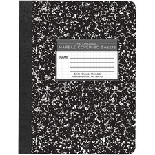 Composition book contains 80 sheets of 20 lb. heavyweight paper. Each sheet is unruled. Design features a center-sewn hard cover with square covers. Composition book is ideal for school lab reports.