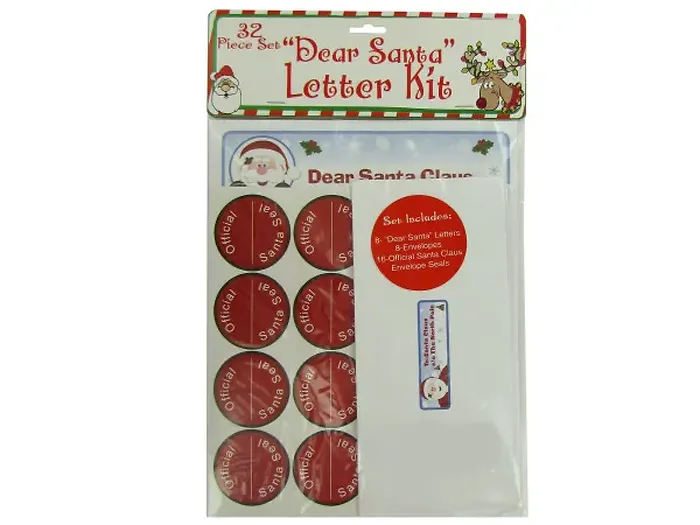 Featuring 8 beautifully designed letterhead sheets, 8 pre-labeled envelopes destined for the North Pole, and 16 official Santa Claus envelope seals, it's a must-have for the festive season. Perfect for engaging kids in the magic of Christmas, this kit comes packaged in a convenient poly bag with a header card for easy gifting!