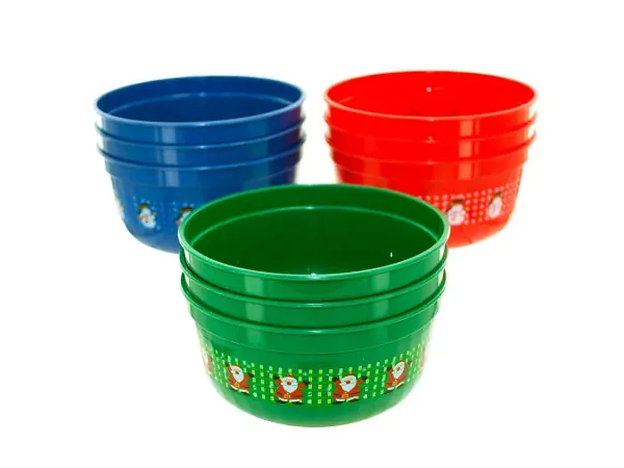 These Festive Mini Christmas Snack Bowls are perfect for serving dips, nuts, or small snacks during holiday gatherings. Each pack includes three bowls in vibrant colors: red, blue, and green, featuring charming trims of either a snowman or Santa, adding a delightful touch to your festive decor.