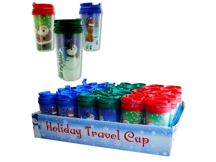 Celebrate the holiday season with our interactive Holiday Travel Cup Countertop Display. Suitable for home, office, or travel, these delightful travel cups feature vibrant designs, including Santa Claus, snowmen, and reindeer.