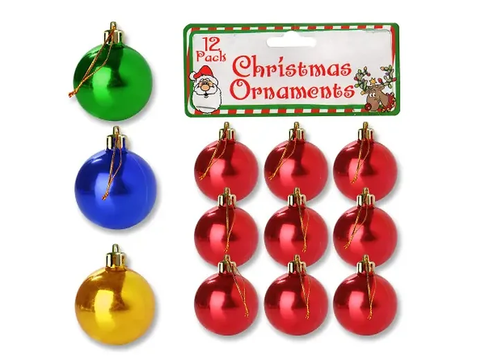 Enhance your holiday decor with these Assorted Plastic Christmas Ornament Bulbs! Perfect for decorating your Christmas tree, these ornaments are crafted from durable plastic, ensuring that you won't have to worry about broken bulbs. Each pack contains 9 vibrant balls in a festive assortment of colors including red, blue, gold, and green. Conveniently packaged in a poly bag with a header card, these ornaments measure just over 1 1/2 inches in diameter, making them ideal for any tree.