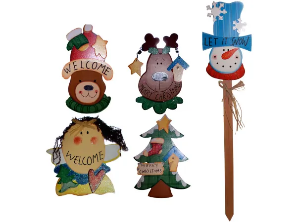 Enhance your yard or garden this holiday season with our Festive Holiday Garden Stakes. Each stake features charming designs including a snowman, Santa Claus, angel, and teddy bear, bringing a delightful touch to your outdoor decor.