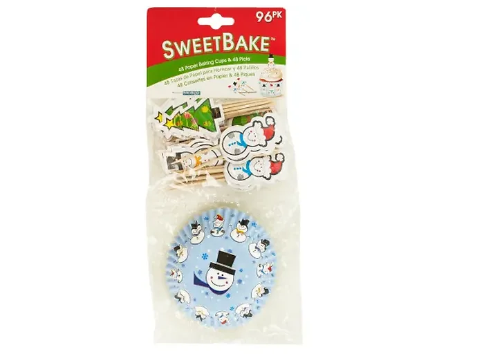 Festive Christmas Baking Cups and Picks Set - 96 Pieces