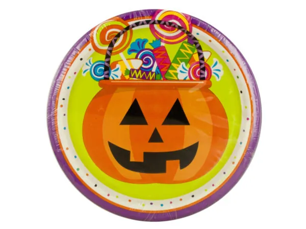 Great for handing out candy or as a tabletop dish, this Halloween Pumpkin Candy Dish features an orange plastic pumpkin-shaped dish with raised details. Measures approximately 8.75" in diameter and 1.25" tall. Comes loose with a UPC label.