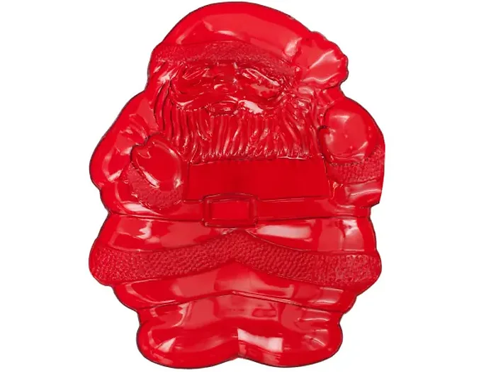 This charming Santa Claus tray is perfect for serving candies, snacks, and festive treats during the holiday season. Made from durable transparent red plastic, it features intricate textured details that add a touch of joy to your gatherings. With dimensions of approximately 11.5" x 1.125" x 9.5" x 1", it is the ideal size for any festive occasion.