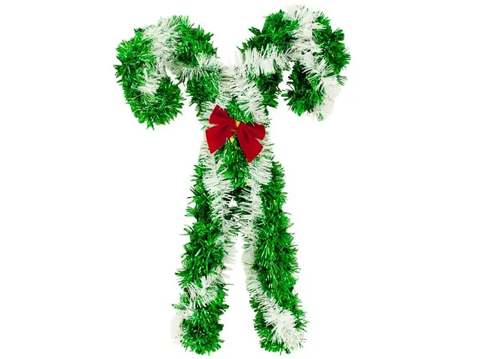 Add a cheerful touch to your holiday decor with our Festive Christmas Candy Canes Wall Decor! Perfect for enhancing any space, these two whimsical candy canes are wrapped in vibrant green and white tinsel and adorned with a classic red bow. Their festive design is sure to delight guests and spread holiday cheer!