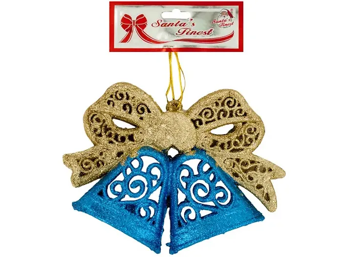 Glittery Christmas Bells & Bow Decoration - 2 Pieces