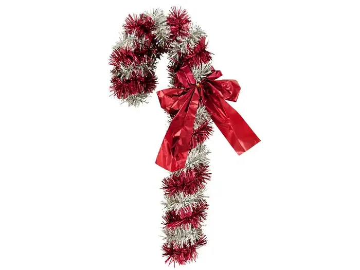 Add a touch of holiday cheer to your decor with our Festive Tinsel Candy Cane Decoration. Perfect for trees, front doors, or as part of your home decor, this charming decoration features a vibrant tinsel candy cane design accented with a lovely red foil ribbon. Each candy cane comes with a metallic hanging loop for easy display and is available in various colorful designs.