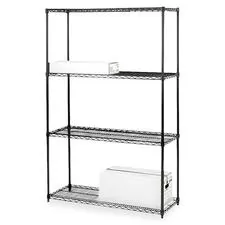 Industrial wire shelving offers a dust-free wire design and adjustable leveling feet with plastic caps to protect floors. Flexible design allows 1" shelf adjustments and modular expansion. Each shelf holds 800 lb. evenly distributed. Wire shelving is made from strong, welded steel wire construction (10-gauge shelf surface, 3-gauge frame, 16-gauge posts, 6-gauge wave pattern) with a durable powder-coat finish. Open wire design permits air circulation and prevents dust accumulation. Add-on (sold separately) and starter units can be combined to expand your shelving system. Easy collar-and-sleeve assembly requires no tools. Starter unit includes four shelves, four posts and snap-together clips. Add-on unit (sold separately) includes four shelves, two posts and snap-together clips.