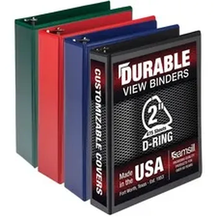 Samsill Durable View Ring Binder - 2" Binder Capacity - Letter - 8 1/2" x 11" Sheet Size - 475 Sheet Capacity - 2" Ring - Fastener(s): 3 x D-Ring - Pocket(s): 2, Internal - Polypropylene, Chipboard - Black, Blue, Red, Green - Durable, Clear Overlay, Non-stick, Ink-transfer Resistant, Wear Resistant, Tear Resistant - 4 / Pack