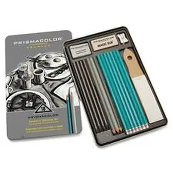 Prismacolor Premier Graphite Set offers the tools you need for precision in one stroke and blendable coverage. Set includes seven Turquoise Drawing Pencils (8B, 6B, 2B, B, 2H, 4H, 6H), four Woodless Graphite Pencils (2B, 4B, 6B, 8B), three water-soluble Graphite Pencils (HB, 4B, 8B), a Magic Rub eraser, large kneaded rubber eraser, steel pencil sharpener and one sanding board. The latex-free, Magic Rub Eraser absorbs graphite and erases India Ink. The kneaded eraser can be molded and shaped anyway you want to erase tiny specks or large areas. Simply knead the eraser to clean it.