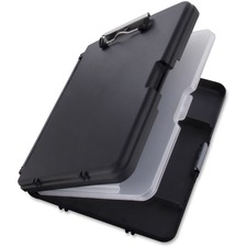 Cruiser-Mate II Storage Clipboard is perfect for any law enforcement officer, parole office, social worker, delivery driver, demolition supervisor or anyone else looking for a durable mobile work space. This form holder offers heavy-duty construction with black vinyl clad finish. Form holder features a high-capacity clip (1"), slide on clamp for ID cards or notes and two separate storage areas to keep forms and supplies organized. Lower compartment has 1" capacity and features a built-in pen tray. Upper compartment provides an additional 7/16" of storage capacity. Upper tray can be removed for added depth. Self-locking latch keeps compartments securely fastened.