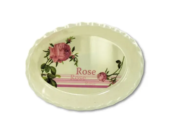 This beautifully designed melamine tray is perfect for serving an assortment of petite desserts, fresh baby vegetables, or delightful party hors d'oeuvres. Featuring attractive scalloped edges and a charming pink rose pattern, it adds a touch of elegance to your gatherings.