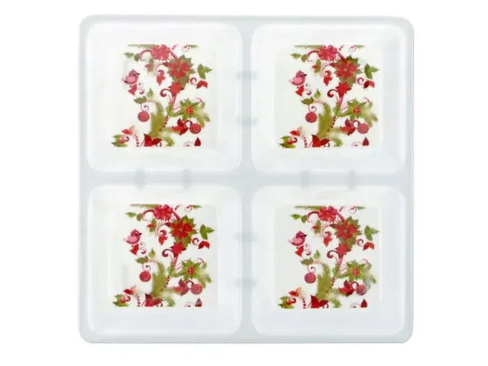 Create a festive atmosphere at your gatherings with this stunning Holly Design Four-Compartment Holiday Serving Dish. Perfect for serving a variety of meals, sides, condiments, snacks, desserts, or treats during the holiday season. This dish features a beautiful Christmas-inspired holly design, making it an ideal centerpiece for your dinner parties.