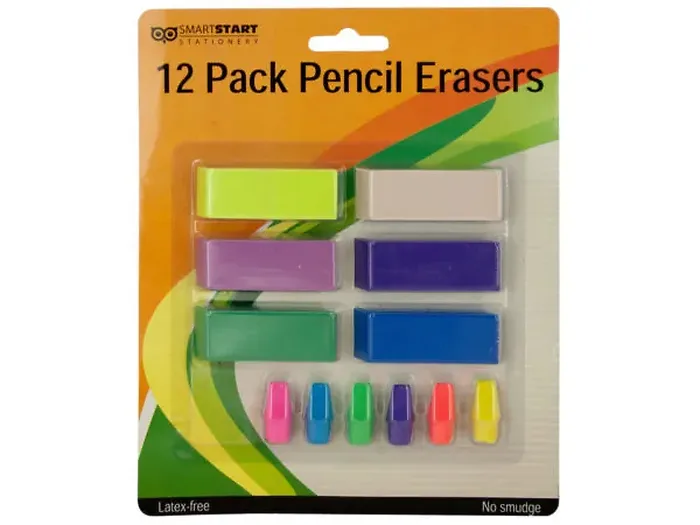 Enhance your writing experience with our Brightly Colored Pencil Erasers Set, perfect for home, school, or office use. This set includes 12 vibrant erasers that make erasing mistakes a breeze.