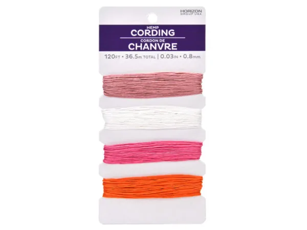 Create beautiful bracelets, necklaces, anklets, and more with this versatile hemp cord pack. This assortment features a total of 120 feet of easy-to-tie and knot hemp cord in stunning pastel colors including blue, magenta, lime, and purple. Perfect for various craft projects, this pack is neatly presented in a 6.50" x 3.25" hanging panel, making it ideal for countertop display.