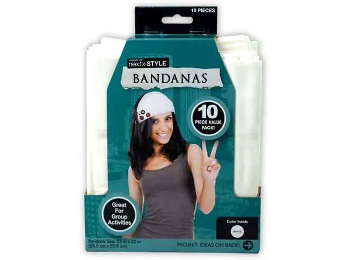 These 10 Pack Customizable White Cotton Bandanas are perfect for group activities, events, or personal crafts. Made from 100% cotton, each bandana measures 22" x 22", offering a generous size for your creativity. The plain white color allows for easy personalization, making them an ideal choice for any occasion. The bandanas come conveniently packaged in a hanging panel, measuring 6.25" x 8.45" x 1.50".