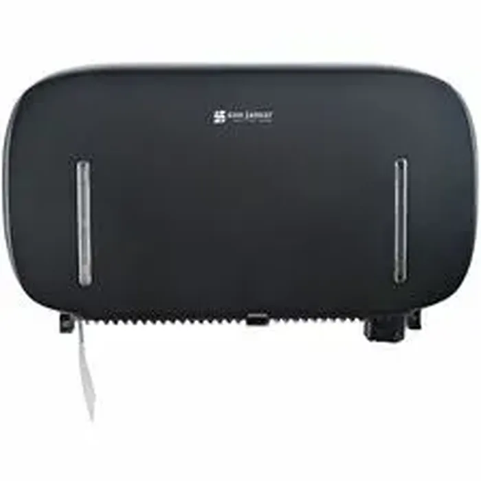 San Jamar Timeless Twin-Roll Bathroom Tissue Dispenser - Roll Dispenser - 2 x Roll - 20" Height x 11.6" Width x 4.8" Depth - Plastic - Black - Durable, Easy-to-load, Wall Mountable, Break Resistant, Contemporary Style, Key Lock - 1 Each