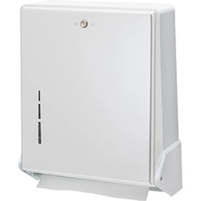 True Fold Towel Dispenser accommodates both C-fold and multifold paper towels. It is easy to use and maintain with a convenient, operator-friendly flip door that helps eliminate product waste. This large-capacity dispenser holds up to 300 C-fold towels or 500 multifold towels to reduce maintenance and labor costs. The standard keylock prevents towel theft. Touchless dispensing - with no lever to pull or wheel to turn - offers a great option for sanitary hand hygiene. All users have to do is pull on the protruding towel. Dispenser features a metal front with an attractive finish and a break-resistant plastic back panel that is sure to stand tough against years of heavy use.