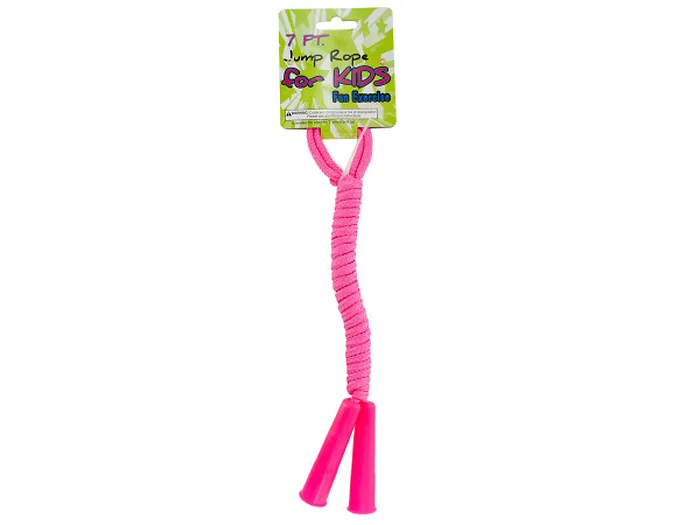 Jump roping is a classic, fun exercise that kids of all ages can enjoy with this brightly-colored 7-Foot Jump Rope. Made of strong woven nylon with sturdy plastic handles. Comes in assorted colors. Comes packaged with a hang tag. Package measures approximately 15" x 3.5" x 1".Available in a pack of 24Product Type: Bulk Buys