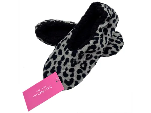 Indulge in comfort with the Isaac Mizrahi Women's Leopard Sherpa Lined Slippers. Designed for the fashion-forward, these cozy slipper socks are perfect for lounging, light household chores, or simply enjoying a relaxed day at home. The stylish black and cream animal print adds a touch of flair, while the soft black lining ensures warmth and comfort.
