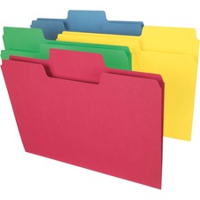 Smead SuperTab 1/3 Tab Cut Letter Recycled Top Tab File Folder - 8 1/2 x 11 - 3 Internal Pocket(s) - Manila - Blue, Red, Green, Yellow - 10% Recycled - 12 / Pack