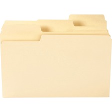 Heavyweight, legal-size folders deliver nearly double the labeling area of standard folders so you can use larger text or more lines of description on your label. Oversized, 1/3-cut tabs in assorted positions actually provide a 90 percent larger label area. Each durable folder is made of 14 point manila stock and is scored for 3/4" expansion. SuperTab Heavyweight Folders fit any vertical or lateral filing system.