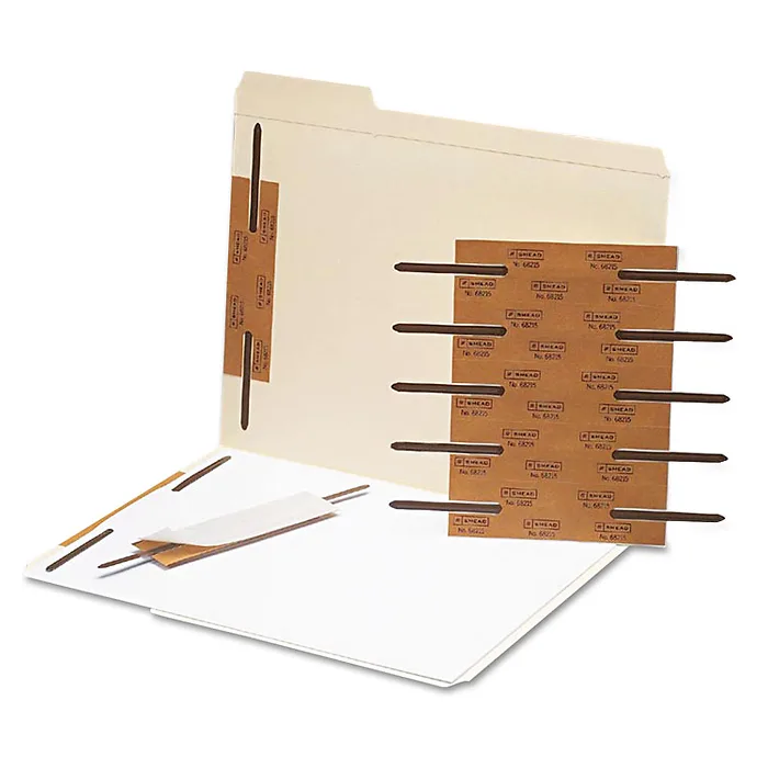 Feel confident knowing your documents are secure by using this fastener with a durable 5" reinforced self-adhesive strip. To use, simply remove the backing from the adhesive strip and apply to a filing surface. The superior adhesive strength of the self-adhesive strip will secure the fastener and its contents on a variety of filing surfaces. Adhesive strip allows easy alignment of fastener. Independent strength tests indicate the reinforced fastener's adhesive has twice the holding power of traditional self-adhesive prong-style fasteners. Fasteners offer a 2" capacity.
