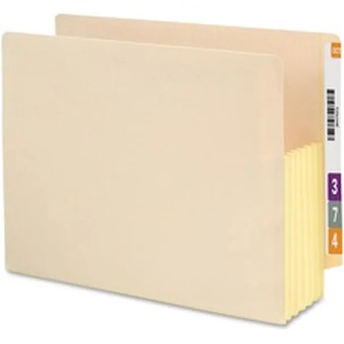 End-tab file pockets made of manila stock are an economical choice for filing depositions, lengthy government reports or other paper-intensive records. Each letter-size expands 5-1/4" and offers a straight-cut, double-ply tab. Durable construction accommodates bulky records. Gussets reinforced with tear-resistant material at the top add strength to the point of greatest wear.