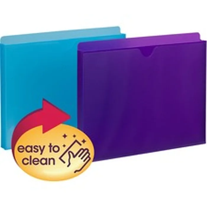 Poly Expanding Jackets allow even the biggest projects to be easily organized and stored in one file jacket. Clear sleeve on the front is handy storage for an often-referenced document such as a calendar, project plan or a to-do list. Clear sleeve includes a thumb notch for easy insertion and removal of documents. Full-height gusset allows expansion, and jacket is closed on three sides. Straight-cut tab allows detailed labeling. Poly Expanding Jackets work well with coordinating Smead SuperTab Poly File Folders or other Smead letter-size file folders. Durable, translucent poly material is tear-resistant, water-resistant and easy to clean. Assorted colors are purple and teal.