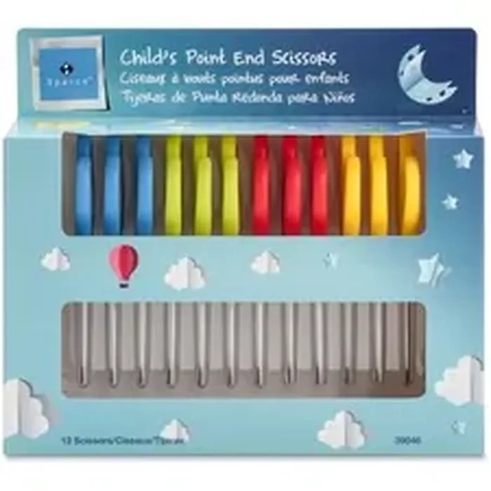 5" scissors designed for use by children between 3 to 8 years old. With a pointed end, these scissors provide a precise way for children to work on arts and crafts projects. Scissors feature a two-tone comfortable soft grip for added safety while cutting.