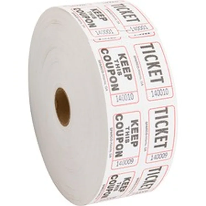 Tickets with a coupon help control admission to events. Each ticket is preprinted with the message, "Ticket" on one half and "Keep this Coupon" on the other. Both halves of each ticket have the same number preprinted on them for easy tracking. Tickets are consecutively numbered. Each roll includes 2,000 tickets.