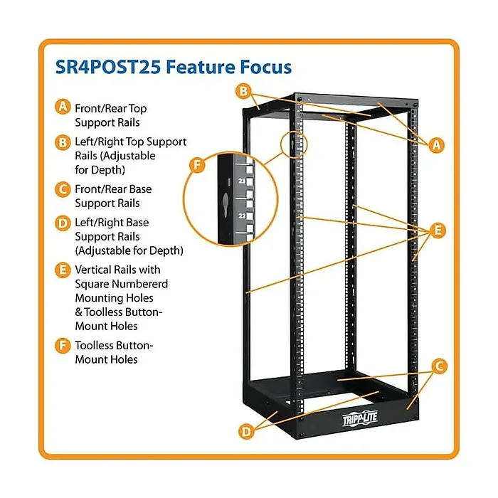 EATON TRIPP LITE SERIES 25U SMARTRACK 4-POST OPEN FRAME RACK - ORGANIZE AND SECURE NETWORK RACK EQUIPMENT