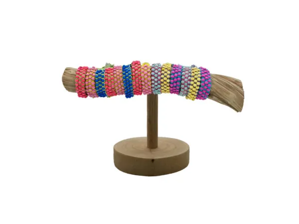 Adjustable Wooden Bead Bracelet Set with Display Stand - 36ct