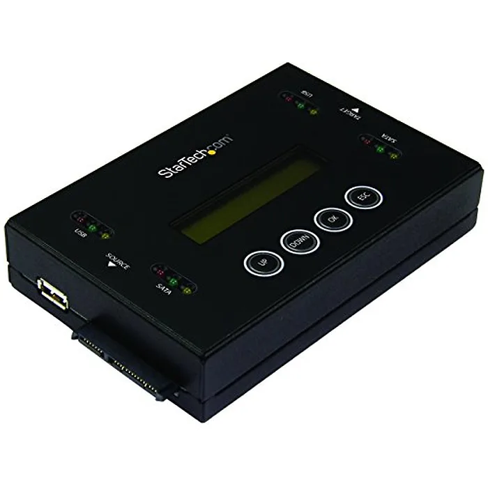 This versatile drive duplicator and eraser lets you clone and erase both USB-based storage devices and 2.5-inch and 3.5-inch SATA SSDs and HDDs, without having to connect to a computer. Ideal for IT professionals and system administrators, this versatile device helps you manage your file and data storage more efficiently, providing both 1:1 copying and cross-interface duplication. 1:1 or cross-interface duplication of SATA or USB drives As a drive cloner, this unit lets you easily copy SATA and USB drives without having to connect to a computer. It enables you to duplicate 1:1 (from SATA to SATA or USB to USB) as well as cross-interface duplication from SATA to USB or USB to SATA. The drive cloner provides four duplication modes, including Quick Copy, All Partitions, Sector-by-Sector (Whole Drive) at speeds of up to 6.6GB/min., and Percentage Copy. Multiple erase modes Erase SATA or USB flash drives with ease, without a host computer. As a drive eraser, the SU2DUPERA11 gives you six erase modes including Quick Erase, Single Pass Overwrite (Full Erase), 3-Pass Overwrite (DoD) Erase, 3-Pass Overwrite and Compare, Secure Erase and 7-Pass Overwrite. You can erase a single SATA or USB drive, or two drives simultaneously. Designed for ease of use The drive duplicator and eraser features a compact and lightweight design with easy-to-use features. It offers convenient menu navigation buttons and an LCD display that clearly identifies the active duplication or erase mode and task status, to ensure fast and efficient operation. The SU2DUPERA11 is backed by a StarTech.com 2-year warranty and free lifetime technical support.