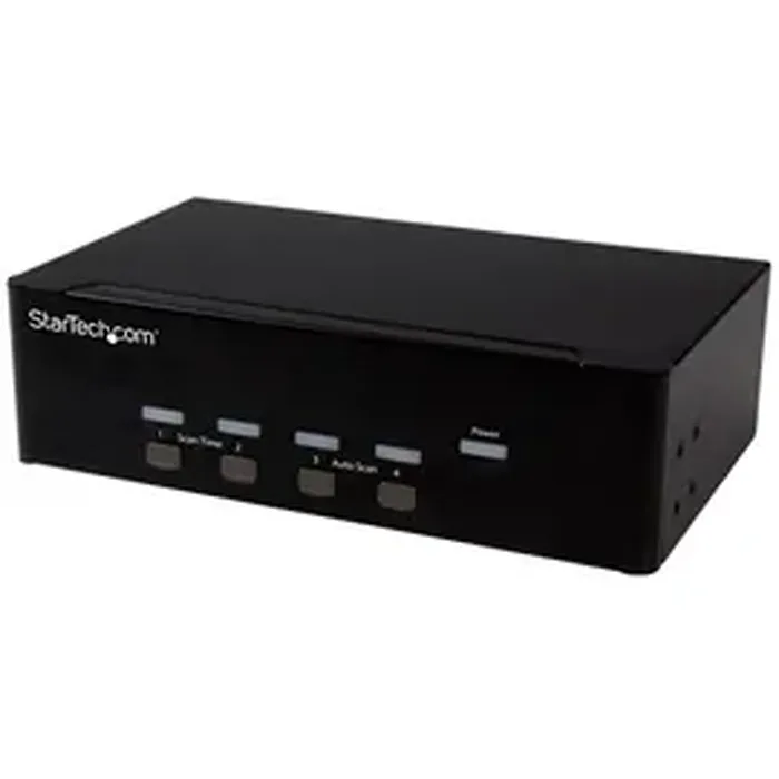 Number of Computers Supported: 4Number of Local Users Supported: 1Maximum Video Resolution: 1920 x 1200USB: YesVGA: YesNumber of USB Ports: 8Number of VGA Ports: 10Height: 2.4"Width: 8.7"Depth: 5.1"Weight (Approximate): 2.72 lbPackage Contents: 4-port KVM Switch With Dual VGA - USB 2.0, 1 x Universal Power Adapter (NA / EU / UK / AU), 1 x Instruction Manual, Green Compliance Certificate/Authority: RoHSLimited Warranty: 2 YearThis USB KVM lets you connect four computers, each with dual VGA outputs, to a dual-monitor workstation. You can switch the workstation between each computer, as well as two additional USB peripheral devices and 3.5mm speakers & microphone. Maximize Productivity With Dual Video With support for two VGA video inputs and four different computers, this KVM switch maximizes productivity. Not only can you access multiple computers, but you can also use two VGA monitors on each computer streaming independent content to each display, which gives you the freedom to multitask and increase your productivity. The VGA ports support resolutions up to 1920x1200 for maximum screen viewing space. Multi-system access Featuring dual video and support for your keyboard and mouse, along with a 2-port USB hub for additional peripheral devices, this KVM switch is perfect for accessing four separate systems using the same workstation. Support for your workstation plus two additional peripheral devices makes this KVM ideal for server control, simplifying access to multiple computer systems. Hassle-free operation This 4-port KVM ensures effortless operation with intuitive hotkey control. It provides a simple yet comprehensive solution for switching between each connected computer and also supports manual operation using the easy-to-access buttons located on the front of the switch. The SV431DVGAU2A is backed by a 2-year StarTech.com warranty and free lifetime technical support.