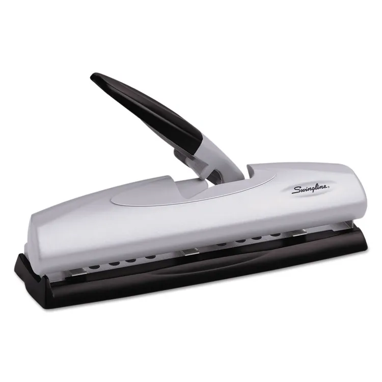 General InformationManufacturer:ACCO Brands Corporation Manufacturer Part Number:A7074357 Manufacturer Website Address:http://www.acco.com Brand Name:Swingline Product Line:LightTouch Product Name:LightTouch Heavy-Duty Punch Marketing Information:LightTouch Heavy-duty Punch combines revolutionary ease-of-use, breakthrough design, high-capacity productivity and jam-free performance. Three-hole punch requires 50 percent less punching effort than any punch in its class. Precision punch heads and unique lever handle are fused into one mechanism delivering complete pin control for guaranteed jam-free action. Semi-adjustable punch punches up to 40 sheets of 20 lb. paper. One-of-a-kind, top-loading design delivers exceptional feeding consistency with no paper arching. Translucent chip tray allows easy maintenance and chad removal.