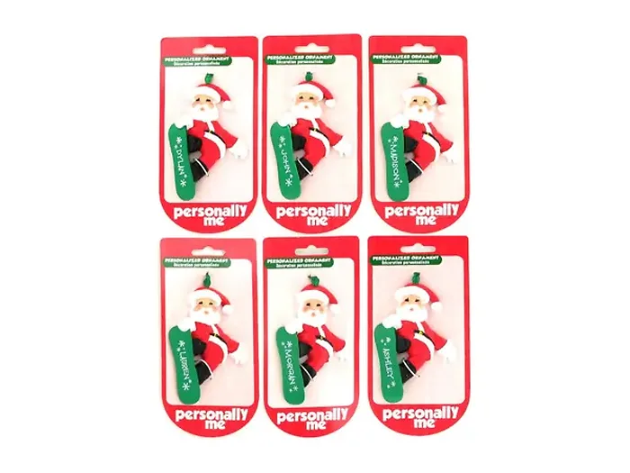 Celebrate the joy of Christmas with our beautiful Personalized Santa Skating Ornament designed for children named Nicholas. This charming ornament showcases Santa gleefully skating on a board that prominently features the name Nicholas. It's a perfect addition to your holiday décor, adding a personal touch to your Christmas tree, or it can serve as a delightful package topper.