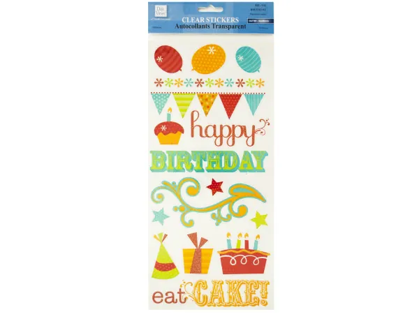 Birthday Clear Stickers with Glitter Accents