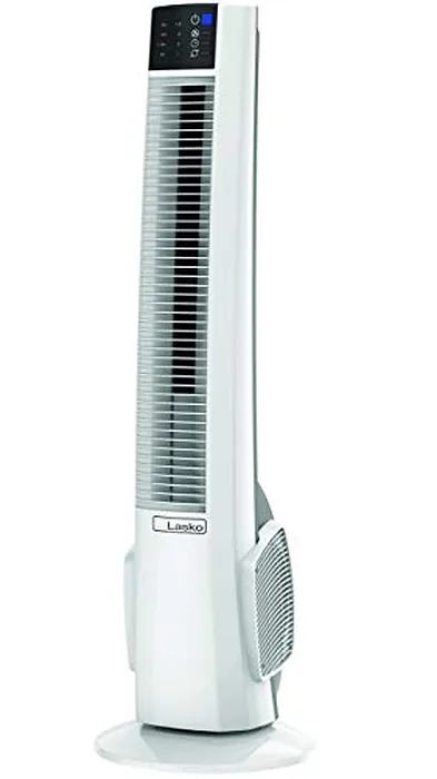 LASKO's Oscillating Hybrid Tower Fan - 25 percent MORE AIR VELOCITY. This innovatively designed hybrid fan combines the sleek streamlined body of a tower fan with the superior power of an air blower resulting in 25 percent more air velocity than traditional tower fans. If you live where it?s hot, this fan creates excellent air flow to help you beat the heat. WHITE NOISE FOR SLEEPING, This fan, powered by 4 powerful speeds, gets louder as the speed setting increases (it is half air blower, after all). But you might find the lowest setting creates just the right amount of white noise for you to get some rest. The lowest setting is also quiet enough to watch TV, yet still powerful enough to keep the air moving. EASY TO USE, Simple, no tools base assembly required. Assembles in minutes. Electronic control features are a breeze to operate. The handy remote control lets you operate the 4 speeds, optional oscillation and energy-efficient 8-hr timer without ever having to get up. Built in carry handle makes it easy to move the fan to wherever relief is needed. SPACE SAVING DESIGN, Standing 38" tall with a small 12" x 12" footprint, the sleek, vertical design optimizes floor space letting you to put this stand-up fan in places where pedestal & box fans won?t fit, without sacrificing air circulation, comfort or style. Ideal for the dorm, bedroom, kitchen, living room, RV and home office. TRUSTED FOR GENERATIONS, Lasko has been making quality household products for over 100 years. Lasko fans are ETL Listed and come with our patented Blue Plug safety fuse technology, making them a safe choice for a cooling breeze when it?s hot and humid outdoors.