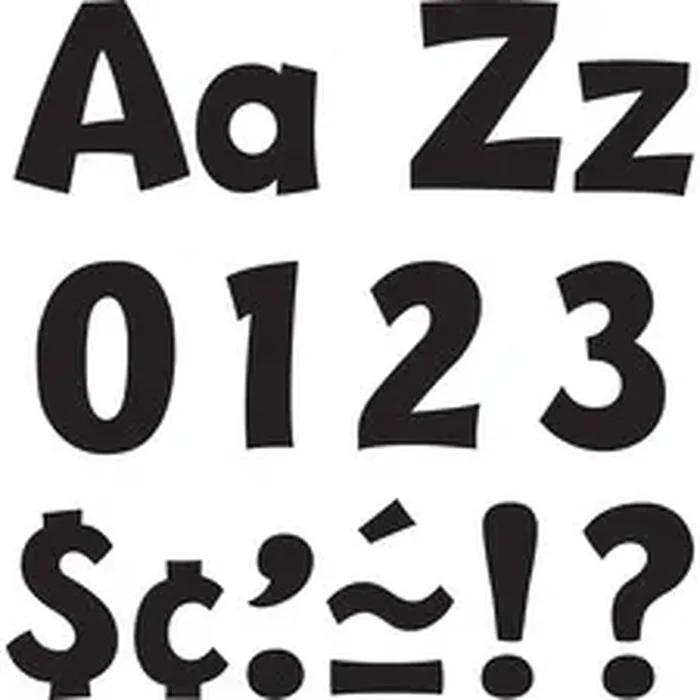Trend 4" Ready Letter Playful Combo Pack - 83 x Lowercase Letters, 59 x Capital Letter, 36 x Punctuation Marks, 18 x Spanish Accent Mark Shape - Pin-up - Pin Style - Pre-punched - 4" Height x 8" Length - Black - 3 / Pack