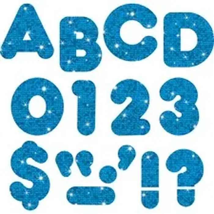 Trend 4" Sparkle Uppercase Ready Letters Set - 50 x Capital Letter, 10 x Number, 10 x Punctuation Marks Shape - Pin-up - Casual Style - 4" Height x 9" Length - Blue - Paper - 1 / Pack