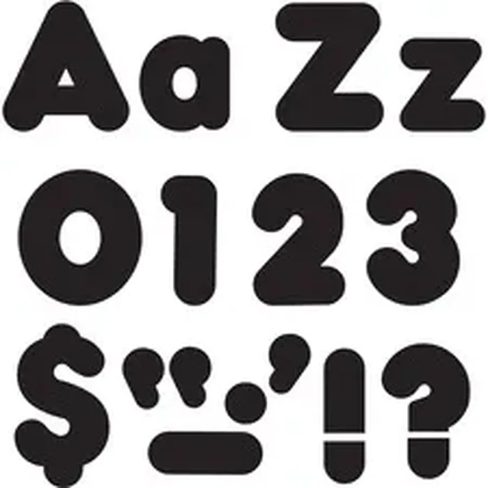 Trend Black 4" Casual Combo Ready Letters Set - Skill Learning: Number, Alphabet, Symbol - 20 x Number, 82 x Lowercase Letters, 50 x Uppercase Letters, 29 x Punctuation Marks Shape - Casual Style - Fade Resistant, Reusable, Easy to Use, Durable - Black - 1 / Pack