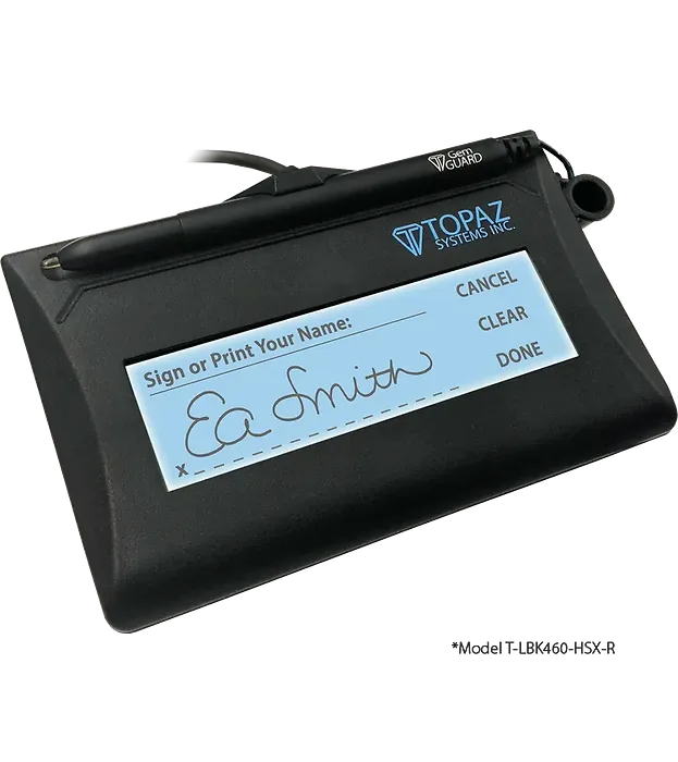 The SigLite LCD 1x5 shows the signature on the signature pad, as well as the computer screen.