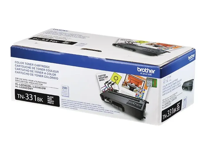 Standard yield black toner cartridge for use with brother hl-l8250cdn, hl-l8350cdw, hl-l8350cdwt, mfc-l8600cdw, mfc-l8850cdw. This is a OEM MONOCHROMATIC TONER BROTHER brand Toner Cartridge (SD BLACK TONER) that works with the following printers / machines (HL-L8250CDN, HL-L8350CDW, HL-L8350CDWT, MFC-L8600CDW, MFC-L8850CDW). Product Features: Compatible with: Brother HL-L8250CDN, HL-L8350CDW, HL-L8350CDWT, MFC-L8600CDW, MFC-L8850CDW Duty Cycle: Up to 2500 pages ISO/IEC 19798 Printing Color: Black Printing Technology: Laser Product Description: Brother TN331BK - black - original - toner cartridge Product Type: Toner cartridge Key Selling Points:, Brother Genuine TN331BK Black Toner Cartridge., Professional color laser print quality you can consistently rely on for 2,500 pages. (Approx. toner cartridge yields in accordance with ISO/IEC 19798 (letter/A4))., Intelligently engineered to work in seamless unison with your Brother printer., Brother Genuine toner produces rich, vibrant prints that withstand the test of time. Benefits of this product: Brother Genuine TN331BK Black Toner cartridge delivers crisp, professional color laser output. STANDARD YIELD BLACK TONER. HL-L8250CDN, HL-L8350CDW, HL-L8350CDWT, MFC-L8600CDW, MFC-L8850CDW. OEM BROTHER Brand.
