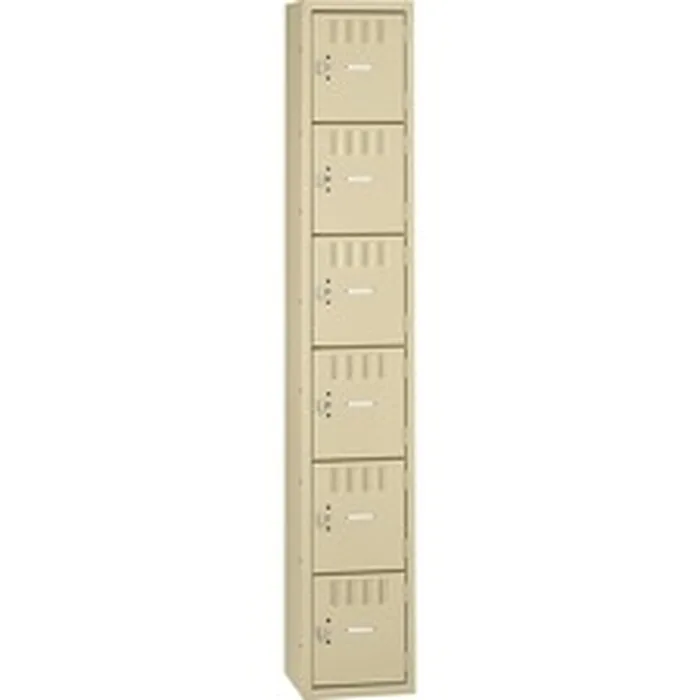 Tennsco 6-Tier No Legs Steel Box Lockers - Internal Size 12 x 12 x 18 - Overall Size 72 x 12 x 18 - Sand - Steel