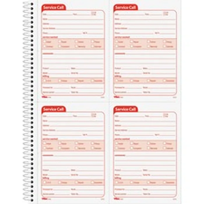 TOPS Service Call 2-part Spiral Message Slip Book - 200 Sheet(s) - Spiral Bound - 2 PartCarbonless Copy - 5.50 x 4 Form Size - 8.25 x 11 Sheet Size - White, Canary - Red Print Color - 1 Each
