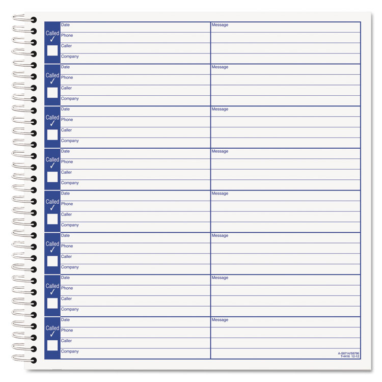 TOPS Voice Message Log Book - 50 Sheet(s) - 24 lb - Spiral Bound - 8.50 x 8.25 Sheet Size - White - Blue Print Color - 1 Each