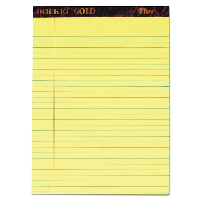 Docket Gold Ruled Perforated Pads, Narrow Rule, 50 Canary-Yellow 5 X 8 Sheets, 12/pack